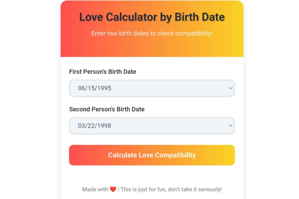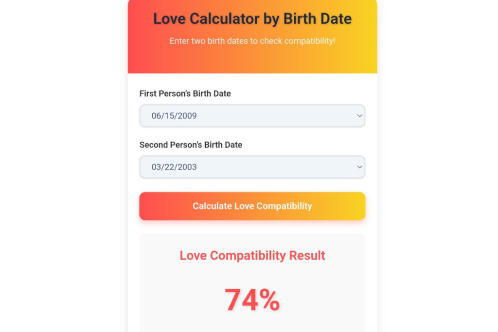 In today’s world, everyone wants to know just how strong their relationship is and how compatible their partner truly is with them. In this context, the “Love Calculator by Date of Birth” has emerged as a simple yet fascinating method that people use to gain insight into their relationship compatibility.